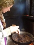 At our request, Gabriel, the farm’s caretaker, disappeared over the hill to the food-stores shed. He came back after 15 minutes with a wooden box about two feet in length and one foot in width. The box was funnel-shaped with a thick piece of wood at its base. Closely following him was his son, Jonaton, with a small grocery bag full of sun-dried coffee beans still in their shells and some still in the husk. Gabriel set down the box on the floor of our patio, poured the beans inside it and quickly demonstrated how to pound the beans with a heavy wooden staff that reached to my shoulders. By pounding the staff into the center of the funnel, the shells would crack and be easier to de-shell. At that point he left us to it. The whole process took us the rest of the day. We started around 11:30 a.m. and finished around 4 p.m. After four hours of de-shelling the grey beans, I whispered to Alex, “Gabriel is probably like, ‘You want coffee? Make it yourself.’”