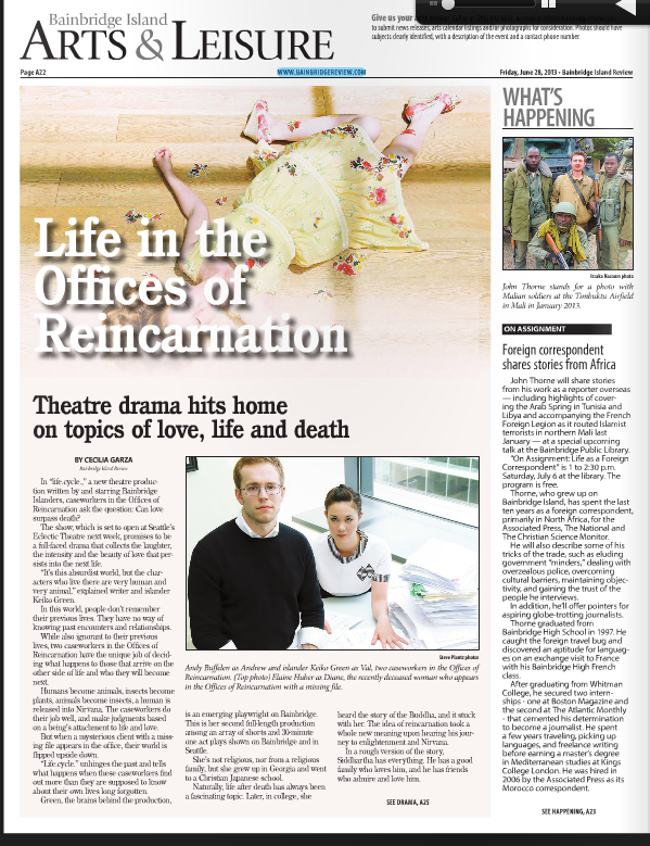 In “life.cycle.,” a new theatre production written by and starring Bainbridge Islanders, caseworkers in the Offices of Reincarnation ask the question: Can love surpass death?