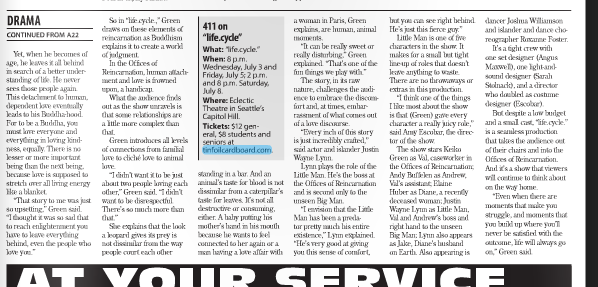 The show, which is set to open at Seattle’s Eclectic Theatre next week, promises to be a full-faced drama that collects the laughter, the intensity and the beauty of love that persists into the next life.